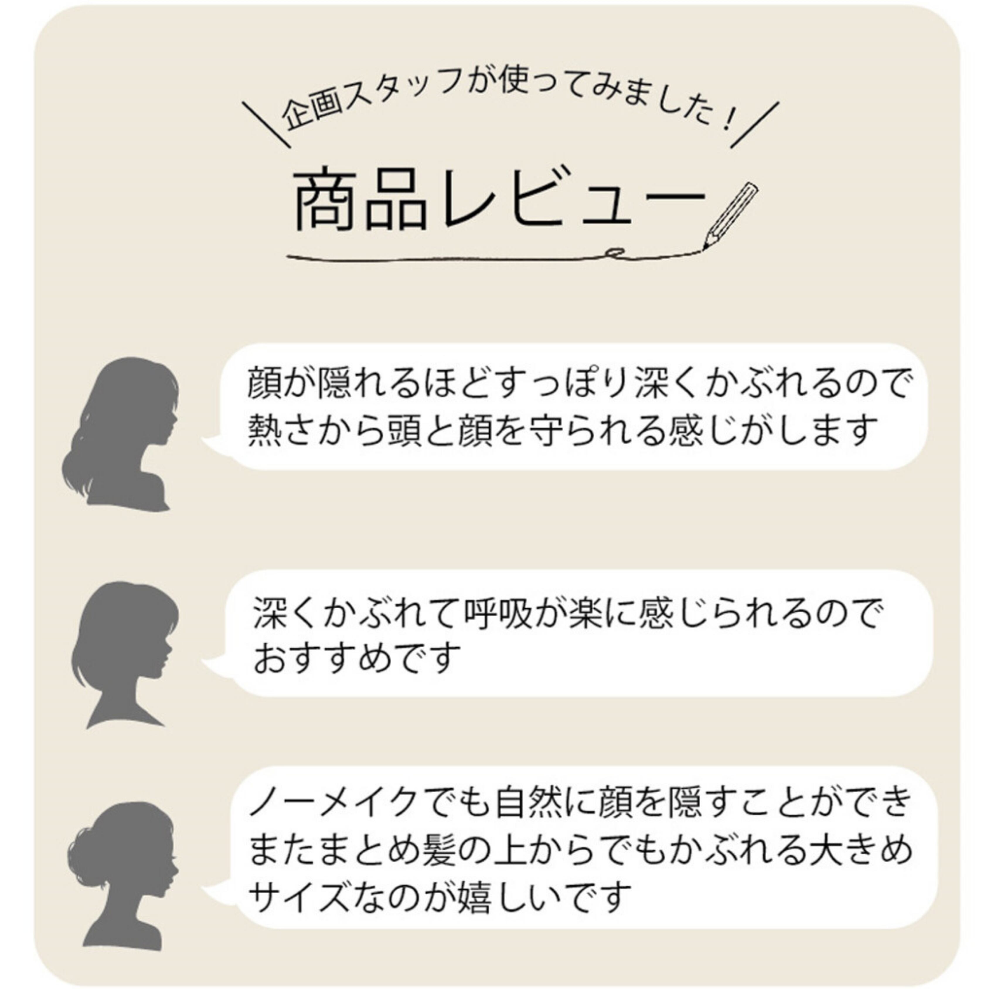 少し大きめ設計(頭まわり約62cm)で、目元までしっかり覆える“深さ”が特長です。